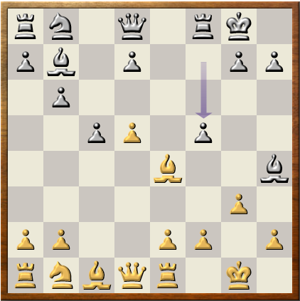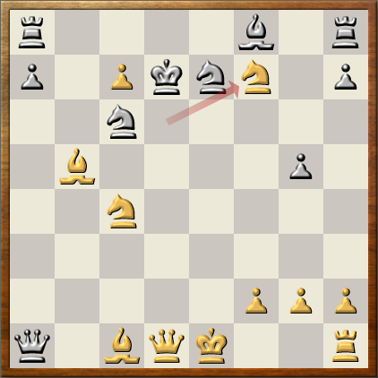 Richard tried a tricky opening where Deep Sjeng was offered a pawn (see diagram). Of course, taking the pawn allows white to bring more pieces into his attack with a gain of tempo. Deep Sjeng considered this and rejected the pawn, instead going fully for it's own attack with 14. .. Rac8. The Baron won a pawn on h7 but this did little to further it's own attack, and soon Deep Sjeng came crashing through the white defenses.
