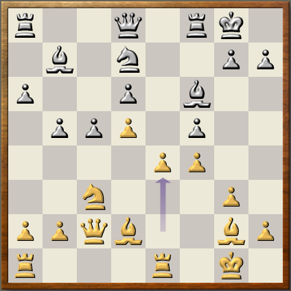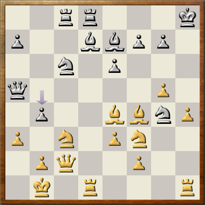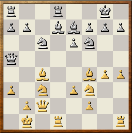 After the opening things initially looked good for Deep Sjeng. In its opening database of Grandmaster games, there were no black wins. IsiChess deviated from theory and both programs rated the position as approximately equal. Unfortunately the position does not seem to be fit for Deep Sjeng since the program made several less than optimal moves and black soon equalized. Black's played was directed against gaining space on the queenside, but Deep Sjeng finally responded accurately by regrouping it's pieces to achieve the break e4.